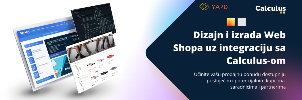 U partnerstvu sa kompanijom Calculus, Yard Group nudi izradu web shop sajtova uz rešenje za integraciju Web shop-a sa Calculus sitemom za automatizaciju poslovanja i prodaje.