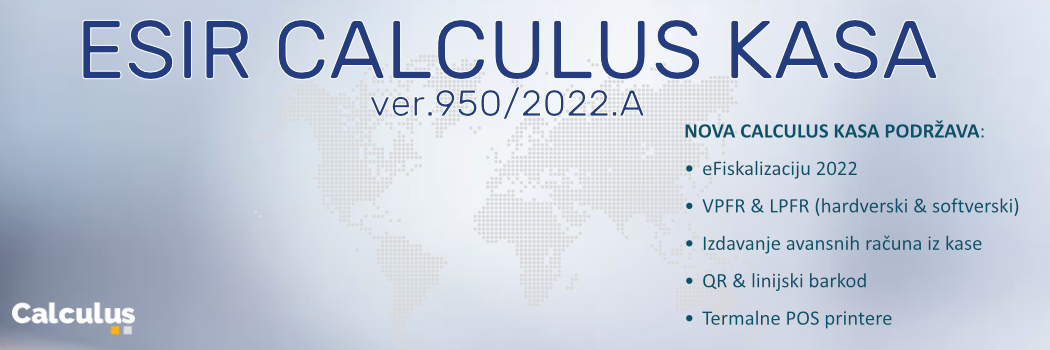 obaveštavamo Vas da smo dobili odobrenje za ESIR CALCULUS KASA ver. 2022.A kod nadležnog sertifikacionog tela Poreske uprave („Službeni glasnik RS“ broj 32/21).